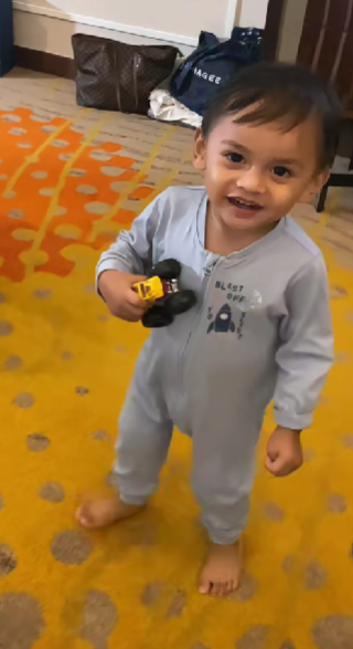 Meninjau di akaun TikTok milik roseezza, telah dikongsikan video terbaru yang memaparkan telatah Tuah. Menerusi video pertama, kelihatan Ezza dan Remy sedang berada di dalam tandas dan ingin bergambar bersama di hadapan cermin. Namun begitu, tiba-tiba Tuah datang dan tersenyum melihat kedua ibu bapanya.