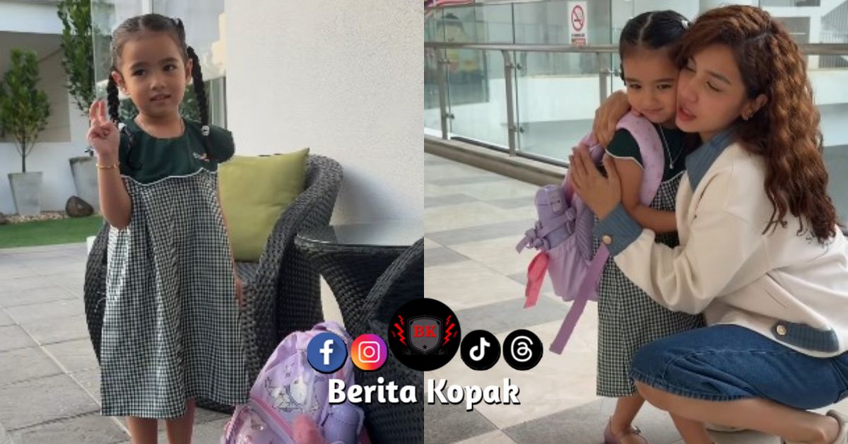 Video hari pertama anak Elisya Sandha, Bunga Elhaq pergi ke sekolah raih perhatian ramai. Steady je Bunga masuk sekolah, mummy pula yang menangis..