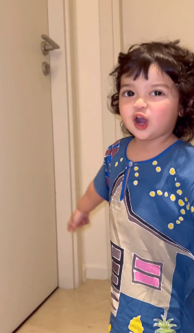 Wara juga tidak terkecuali dan anak sekecil ini juga enjoy mendengar rentak lagu tersebut. MUA Bellaz memasang lagu raya tersebut dan Wara pun mula menunjukkan aksinya. Amboi Wara, pandai sungguh Wara menari mengikut rentak lagu sekali dengan membuat mimik muka.
