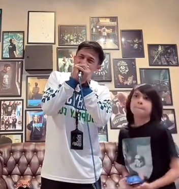 ” Pada mula adik Amad langsung tumbang, tak boleh bangun, lembik lutut tiba-tiba bila sampai turn dia nyanyi.. ” – Ustaz Din
