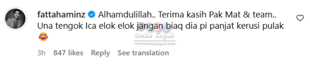 Di ruangan komen, selain menyukai perkongsian ini, ramai yang turut mendoakan yang baik-baik buat Fattah. Antara komen-komen menarik yang dapat dikongsikan adalah :