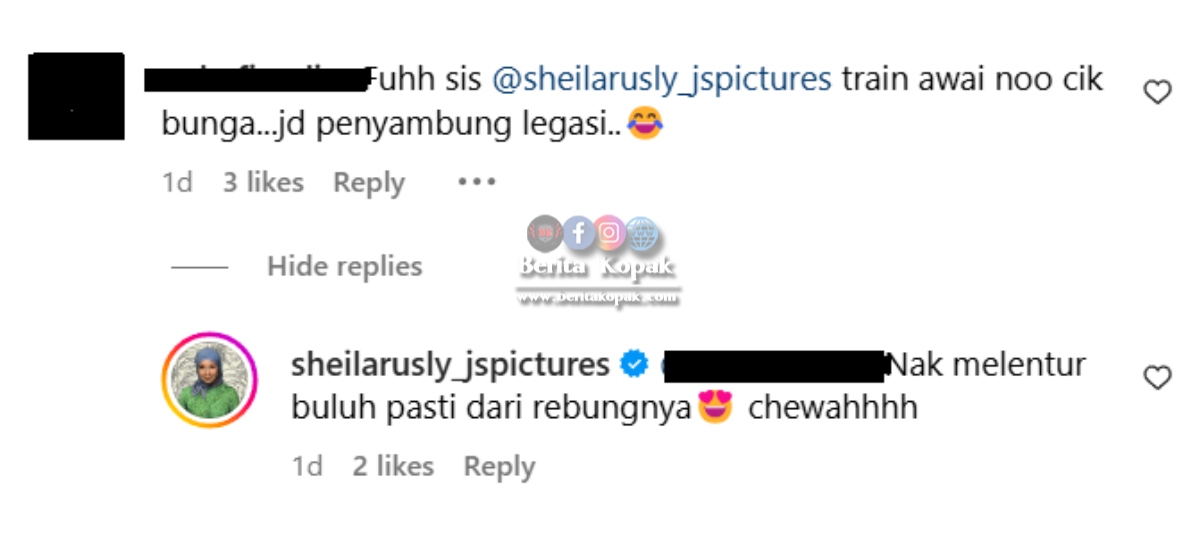 ” Fuhh, sis Sheila train awal noh Cik Bunga jadi penyambung legasi.. ” – Komen Netizen