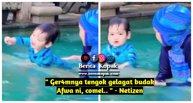 ” Ger4mnya tengok gelagat budak Afwa ni, comel.. Pandai adik berenang.. “