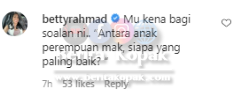 Komen daripada Umie Aida dan Betty juga mencuit hati. Alahai seronok melihat adik beradik sama-sama kuat menyak4t seperti ini :