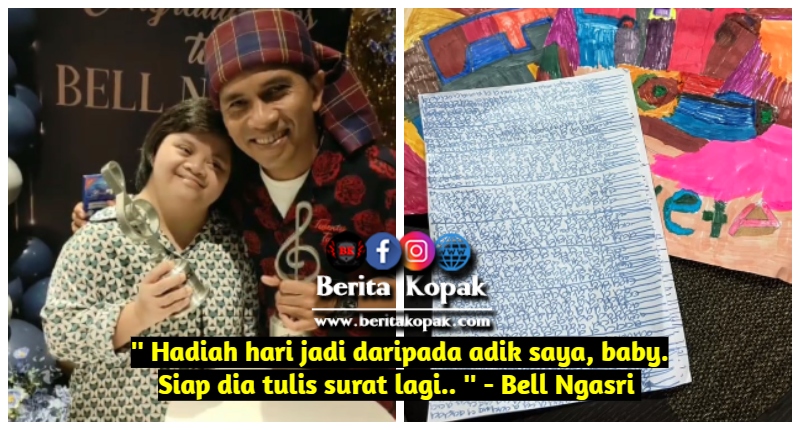 ” Hadiah hari jadi daripada adik saya, baby. Siap dia tulis surat lagi.. ” – Bell Ngasri
