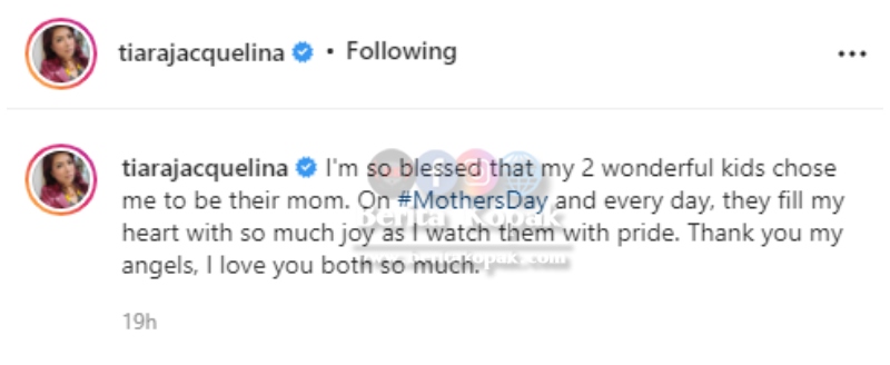 Meninjau akaun Instagram Puan Sri Tiara, telah dikongsikan beberapa keping gambar Puan Sri bersama anak-anaknya, Hani Karmila Mohsin dan Eridani Effendi. Ungkap Puan Sri Tiara di kapsyennya, dia beruntung dikurniakan 2 orang anak yang hebat.