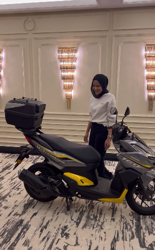Hairul menjer1t memanggil Hanis supaya turun ke ruang tamu. Reaksi wajah Hanis seperti tergamam ketika melihat sebuah motor jenama Honda model Vario 160 berwarna kuning ada di depan mata. Macam pel1k pula hadiah anniversary sebuah motosikal untuk Hanis .