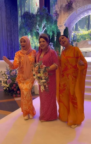 Maria cukup manis mengenakan persalinan berwarna pink, manakala suaminya pula mengenakan suit hitam. Pasangan ini turut bersanding di atas pelamin yang cukup indah. Pastinya ia menggamit memori ketika majlis perkahwinan mereka pada 29 tahun yang lalu.