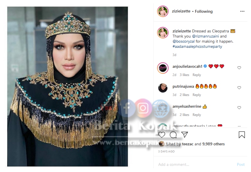 Tidak ketinggalan, Zizie yang tampil dengan watak Cleopatra kelihatan sangat cantik ditemani puterinya, Nayla Nurjenna dan Aalisa Belle. Biarpun sudah mempunyai anak ramai, namun kecantikan Zizie masih tidah berubah sejak dari dulu. Kelima-lima anaknya nampak sangat comel menggayakan kostum yang dipilih oleh ibu mereka.