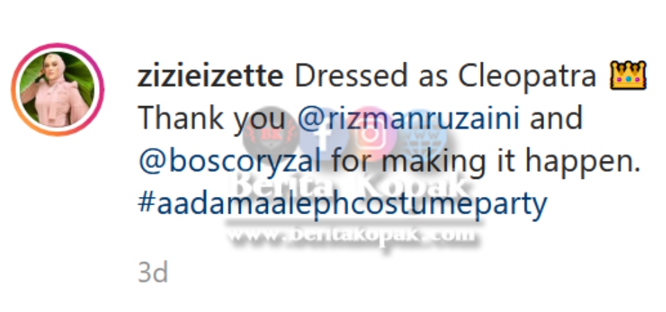 Cantik semua kostum-kostum yang digayakan oleh Zizie dan anak-anaknya. Selamat hari lahir yang ke 3 buat Aadam dan Aaleph. Kami di Berita Kopak mendoakan semoga Aadam dan Aaleph menjadi insan yang berjaya dan dapat membahagiakan kedua ibu dan bapa. Amin.