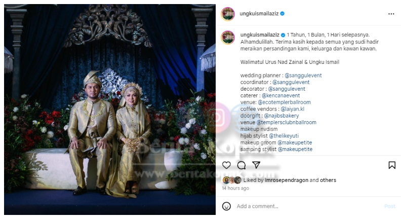 Ungku Ismail juga ada berkongsikan gambar persandingannya bersama Nad di akaun Instagram miliknya.