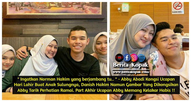 Menerusi akaun Instagram, Abby berkongsi ucapan hari lahir buat anak sulungnya, Danish Hakim yang ke 17 tahun. Nampaknya anak sulung Abby sudah menjadi anak teruna. Beliau berkongsi gambar Danish semasa kecil dan gambar Danish yang terkini. Apa yang menarik, gambar Danish pada masa hadapan pun ada.