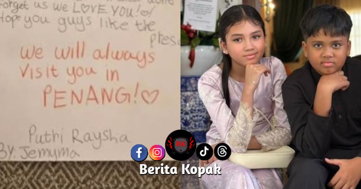 Perkongsian hadiah dan kad ucapan daripada anak Fasha Sandha, Putra Rayfal dan Putri Raysha Jemyma buat datuk dan nenek mereka raih perhatian ramai. Alahai, sweet dan comel sangat kad ni. Siap ada lukisan lagi..