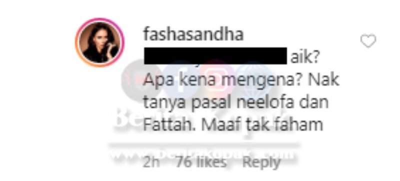 Namun terselit satu komen daripada seorang netizen yang membuatkan Fasha sendiri keliru mengapa persoalan itu ditujukan kepadanya.