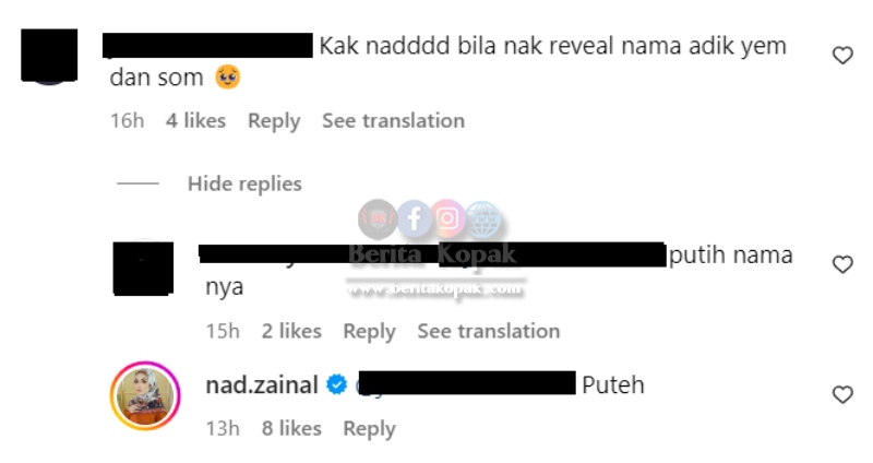 ” Kak Nad, bila nak reveal nama adik Yem dan Som.. ” – Netizen