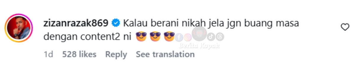 ” Kalau berani nikah je la, jangan buang masa dengan content-content ni.. ” – Zizan Razak
