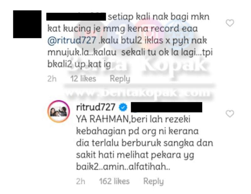 Namun ada juga yang kurang senang dengan perkongsian Rita ini dan dijawab Rita dengan tenang sekali :