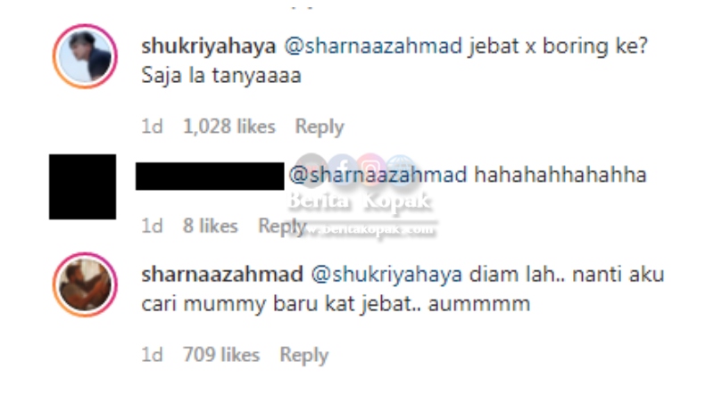 Ada-ada sahaja Sharnaaz dan Shukri ini, memang buat peminat terhibur membaca komen-komen mereka. Apa pun, semoga Shukri berbahagia selalu bersama Tya dan rumahtangga mereka ini sentiasa dalam rahmat Allah.