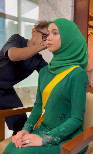 Menerusi akaun Instagram Nazlivingastyle, telah dikongsikan satu video yang memaparkan suasana ketika Puteri Ameerah sedang disiapkan. Untuk istiadat pada hari itu, Puteri Ameerah mengenakan busana baju kurung moden berwarna hijau.