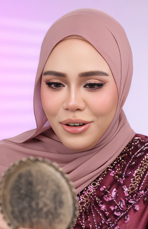 Menariknya, kali ini Norreen disolek dengan tema “Peach Serenade Glam” yang menampilkan gaya solekan lembut, segar dan elegan. Gabungan tona peach yang digunakan berjaya menyerlahkan lagi kecantikan semula jadi Norreen, menjadikan penampilannya tampak lebih berseri dan memikat.