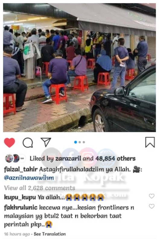 ” Kecew4 nye… Kesian frontliners dan malaysian yang betul-betul taat dan bekorban taat perintah PKP.. “