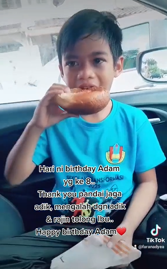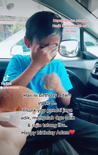 Apa yang menyentuh hati warganet adalah reaksi Adam apabila melihat hadiah pemberian ibunya iaitu Rotiboy. Kelihatan Adam menang1s kerana terharu dengan pemberian ibunya. Coret Faranadyea pada video, ‘hari-hari balik sekolah Adam nak Rotiboy’.