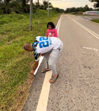 Rupa-rupanya, Achey ingin menunjukkan kertas order yang telah pun dilintangkan dari rumah sehingga ke jalan itu. Jauh juga anak dan ayah ni berjalan dan tak ada yang perasaan pun sebenarnya di sepanjang jalan yang kelihatan berwarna putih itu adalah kertas order.