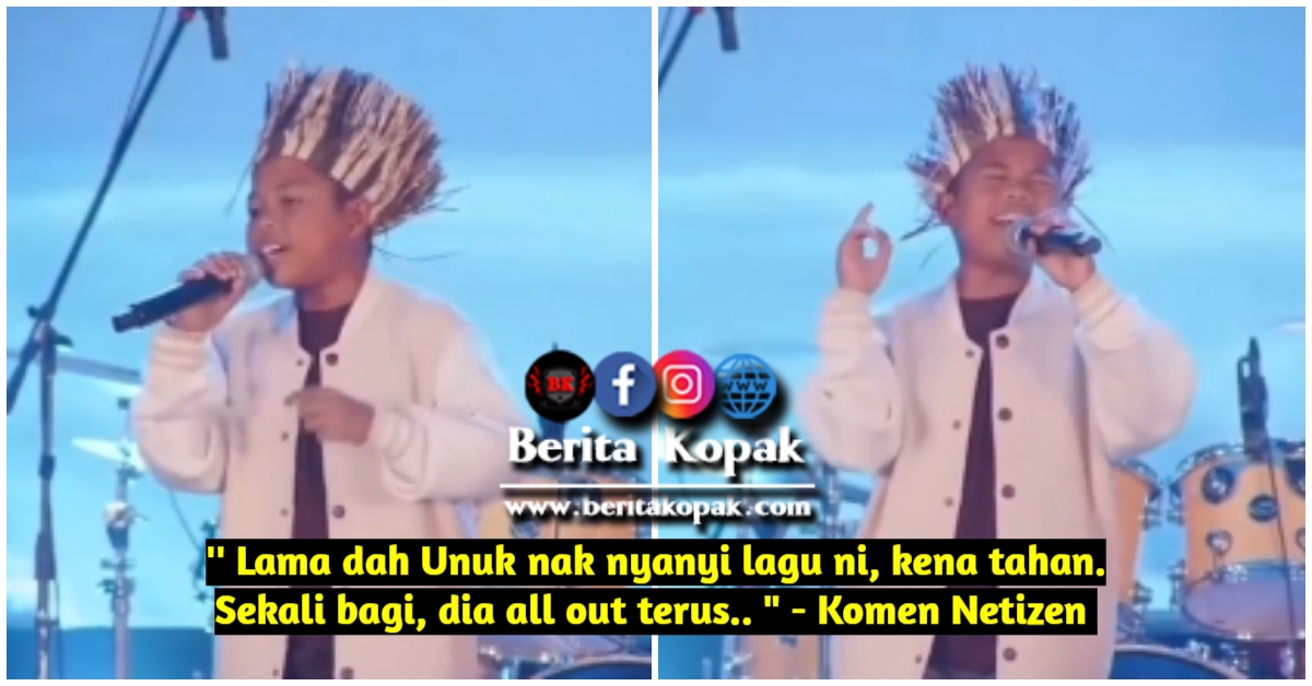 ” Lama dah Unuk nak nyanyi lagu ni, kena tahan. Sekali bagi, dia all out terus.. ” – Komen Netizen