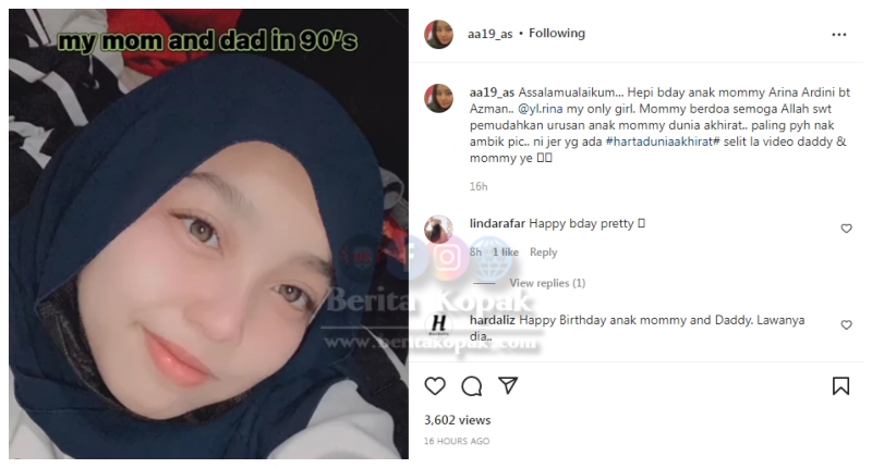 Kongsi Ucapan Selamat Hari Lahir Buat Anak Tersayang, Wajah Anak Perempuan As Feminin, Arina Ardini Raih Tumpuan Peminat. Alahai Dah Besar Anak Dar4 As, Cantik Macam Ibunya Masa Remaja Dulu !!