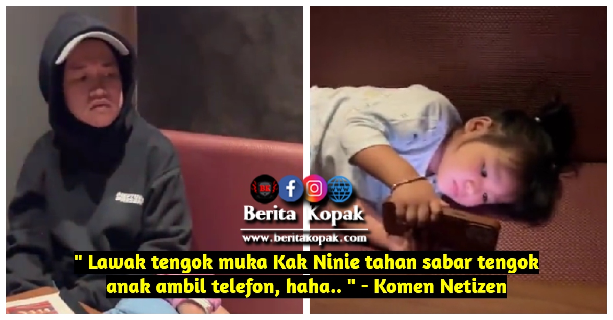 ” Lawak tengok muka Kak Ninie tahan sabar tengok anak ambil telefon, haha.. ” – Komen Netizen