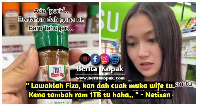 Fizo menyakat Fazeera dengan mengatakan bahan ini selalu mereka pakai di rumah dan meminta Fazeera melihat kepada label di belakang botol rempah tersebut. Pandai Fizo ditunjukkan betul-betul pada perkataan ‘ p0rk ‘ untuk menak0tkan Fazeera.