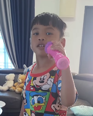 ” Lagu lagend betul siapa ajar dia hahhahahhaha.. Auntie pun tak hafal lagu tu Ayash.. Comel la awak nyanyi, auntie tgk pun geram.. “