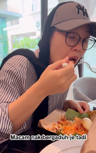 Tidak seperti yang dikatakan oleh Maryam tadi, rupa-rupanya Maryam bersungguh-sungguh menikmati nasi lemak itu. Bukan satu makanan sahaja, Maryam juga memakan laksam. Inilah sikap yang Ryzal dedahkan yang Maryam cakap tidak serupa bikin.