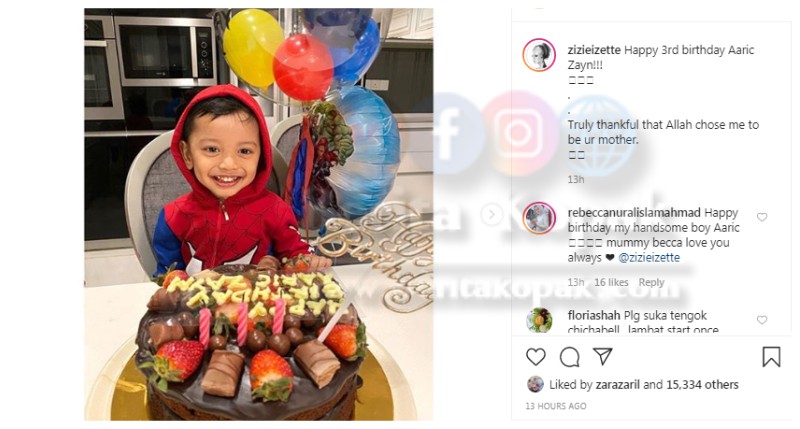 Happy 3rd birthday Aaric Zayn. Truly thankful that Allah Chose me to be ur mother- Begitulah tulisan pada kapsyen, walaupun ringkas tetapi mempunyai makna yang begitu bermakna bagi seorang ibu.