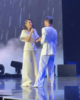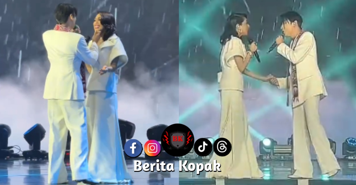 Video Hael Husaini pegang dagu dan berpimpin tangan dengan Dayang Nurfaizah ketika buat persembahan di Konsert MeleToP TVS curi perhatian ramai. Wah betul-betul sweet ni, bersemut weh..