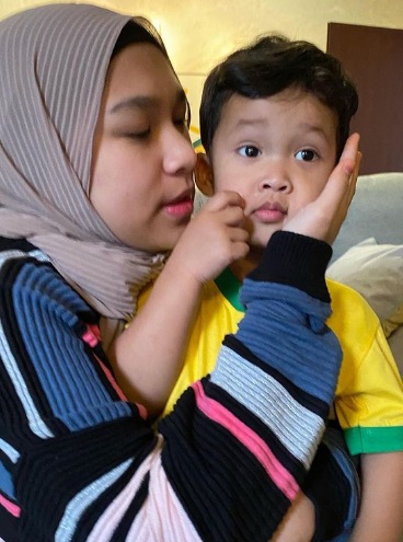 ” Pemalu anak dar4 ni.. Anak2 ni masing2 ada mood diaorg.. jgn dip4ksa2 biarlah dia asal gembira padanya.. Cantik baby besar.. Jgn shy2 la.. Baby cute jer.. ”