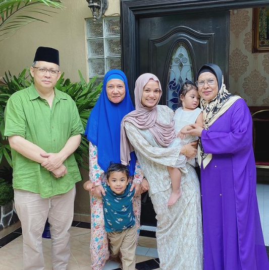 Meninjau akaun Instagram Puteri Sarah Liyana, telah dikongsikan sekeping gambar bapa mertuanya iaitu Datuk Yusof Haslam bersama cucu perempuannya, Sumayyah dan Nuur Nusaybah.