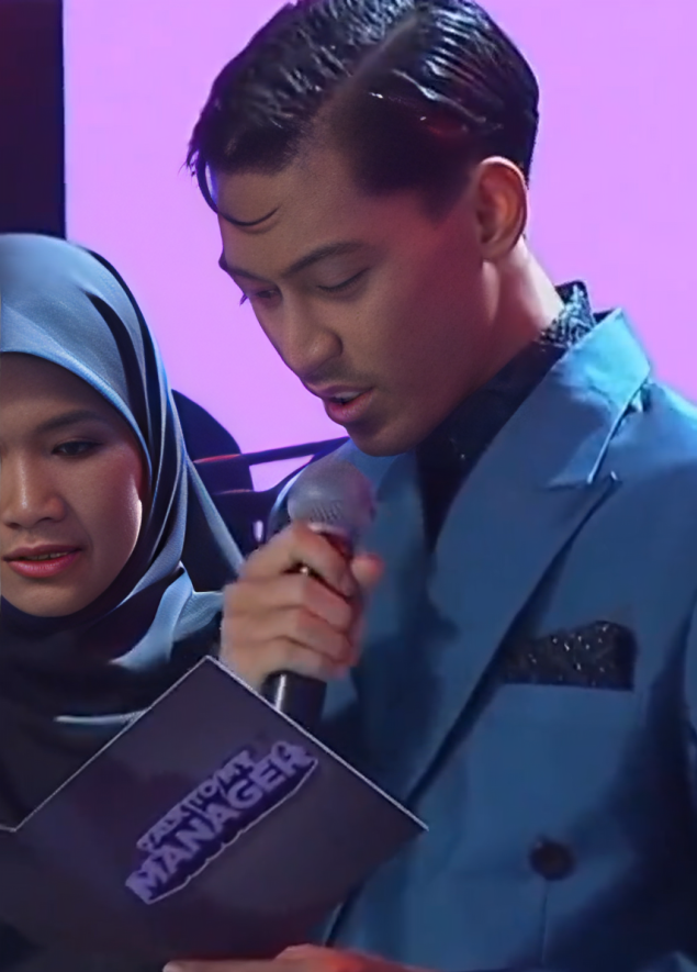 ” Pada mula adik Amad langsung tumbang, tak boleh bangun, lembik lutut tiba-tiba bila sampai turn dia nyanyi.. ” – Ustaz Din