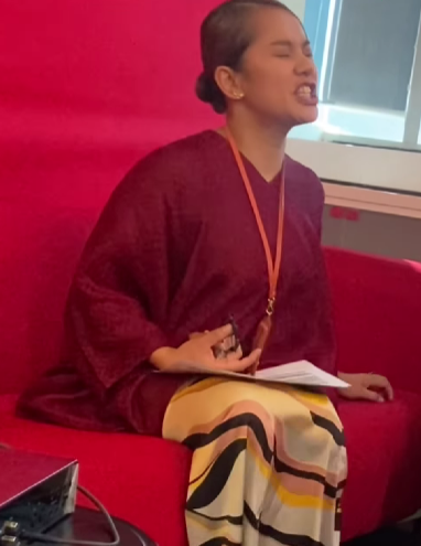 ” Pada mula adik Amad langsung tumbang, tak boleh bangun, lembik lutut tiba-tiba bila sampai turn dia nyanyi.. ” – Ustaz Din
