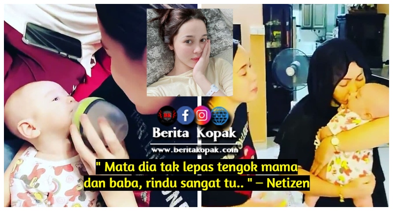 ” Mata dia tak lepas tengok mama dan baba, rindu sangat tu.. ” – Netizen