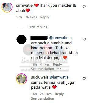 Perkongsian ini telah menerima lebih 5 ribu tanda suka daripada warganet sejak ia dimuatnaik buat masa ini. Watie turut men1ngg4lkan komen pada p0sting ini yang mana Watie tetap memanggil mereka sebagai Makder dan abah. Sweet sangat video yang dikongsikan.
