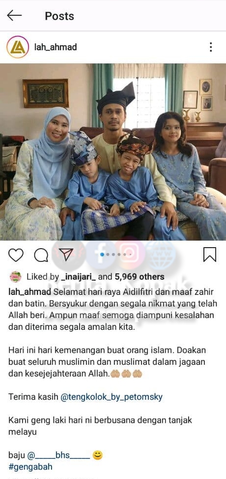 ” Salam Raya Lah n family. Maaf zahir batin.. You’re all looking beautiful.. Jauh di mata tapi dekat di hati.. stay safe.. “