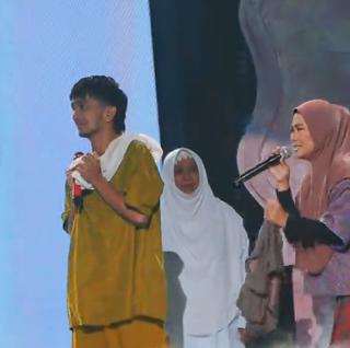 ” Pada mula adik Amad langsung tumbang, tak boleh bangun, lembik lutut tiba-tiba bila sampai turn dia nyanyi.. ” – Ustaz Din
