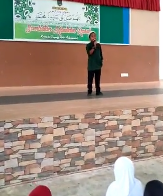 ” Pada mula adik Amad langsung tumbang, tak boleh bangun, lembik lutut tiba-tiba bila sampai turn dia nyanyi.. ” – Ustaz Din