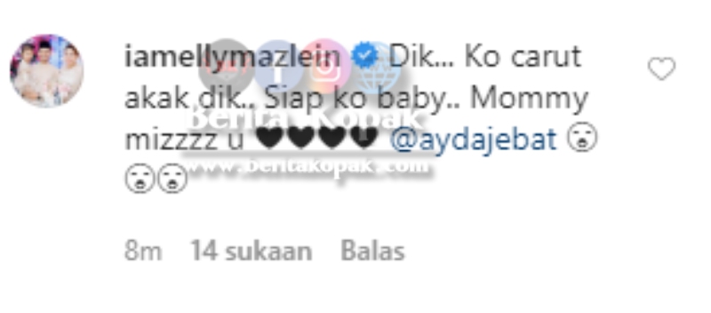 Hahaha.. Kelakar betul lah Ayda .. Kau punya b0san tu sampai seng3t mulut kau menyanyi, respon Elly pun kelakar. Terhibur baca ! Apa-apa pun kami dari Berita Kopak mengharapkan semoga Ayda sentiasa berjaya dalam bidang lakonan, sentiasa dimurahkan rezeki dan bahagia bersama insan-insan tercinta.