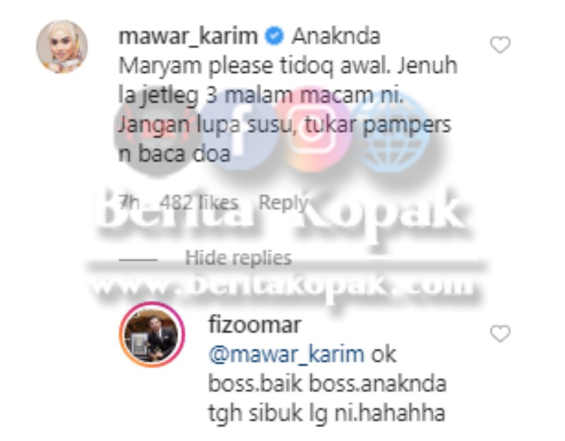 Sumber : IG Fizo Omar, IG Mawar Karim by Berita Kopak