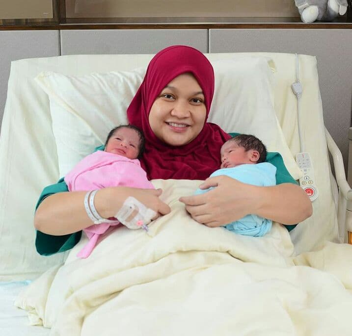 ” Both of u and dr s uploaded the pic at the same time but daddy’s caption is the longest . Terbalik pulak dgn kes saya haha. Comel sangat the twin .. “