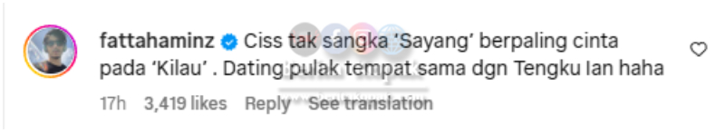 Fattah Amin juga tidak ketinggalan meninggalkan komen di posting Fazura ini :