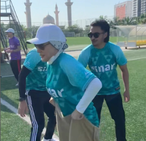 Meninjau entry di akaun Instagram Sinar, telah dimuatnaik video yang memaparkan gelagat mereka ketika acara lari dalam guni berlangsung. Lawak dan melucukan melihat semua melompat-lompat dalam guni untuk ke garisan penamat.
