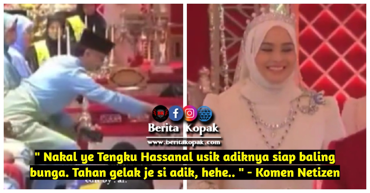 ” Nakal ye Tengku Hassanal usik adiknya siap baling bunga. Tahan gelak je si adik, hehe.. ” – Komen Netizen